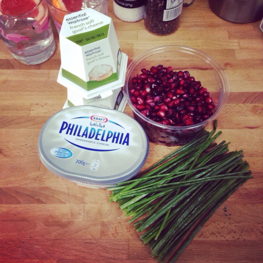 1/ Mix the cream cheese and goats cheese together until soft and creamy.